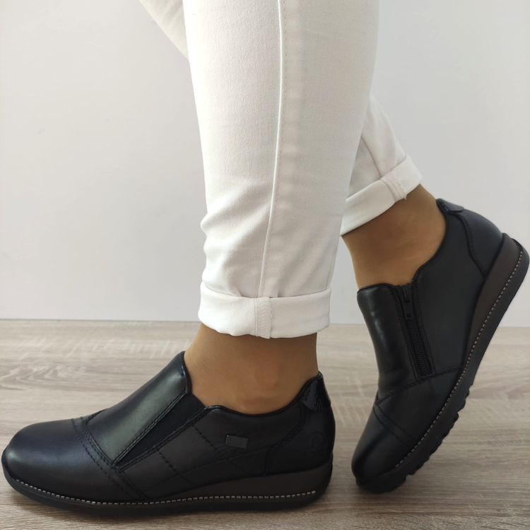 Redescoperă esența stilului urban printr-o combinație perfectă de calitate și design modern cu pantofii casual RIEKER 44277-00. Concepuți pentru femeia modernă și activă, acești pantofi combina pielea naturală cu pielea ecologică, aducând în prim plan atât durabilitatea, cât și un design atrăgător. Fermoarul elegant nu doar facilitează încălțarea rapidă, dar adaugă și un detaliu stilistic inovator, perfect pentru orice ținută urbană. Tocul plat, de 3 centimetri, asigură un mers confortabil pe parcursul întregii zile, făcându-i ideali pentru plimbările prin oraș sau pentru o zi la birou. Înălțimea totală a pantofului de 9,5 centimetri îmbrățișează piciorul într-un mod armonios, oferind un echilibru ideal între confort și stil. Cu RIEKER 44277-00, alegi nu doar o pereche de pantofi, ci un statement de stil și calitate. Un model versatil, pregătit să te însoțească în toate aventurile urbane!