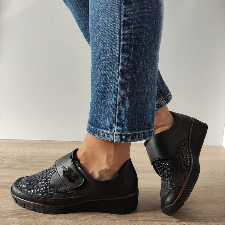 Pantofii casual de la RIEKER cu codul 537C0-00 reprezintă alegerea perfectă pentru doamnele care caută un echilibru între stil și confort.