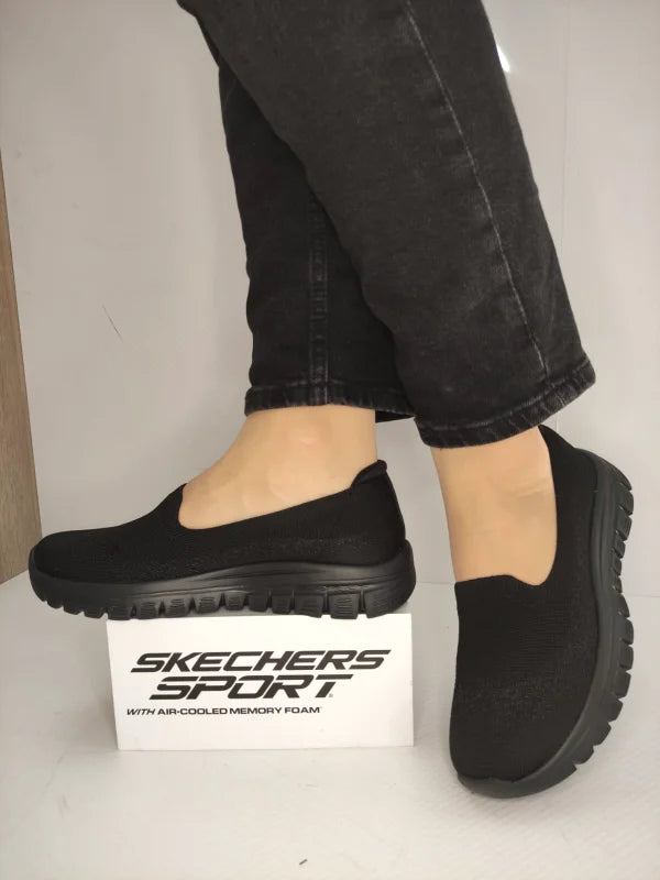 Caracteristici: Material exterior: Textil (Stretch Fit, tip mesh elastic) Culoare: Negru Tip închidere: Slip-on (fără șireturi) Înălțime totală pantof: 10 cm Grosimea talpii (la spate): 3.5 cm Stil: Pantofi casual, ușori și flexibili
