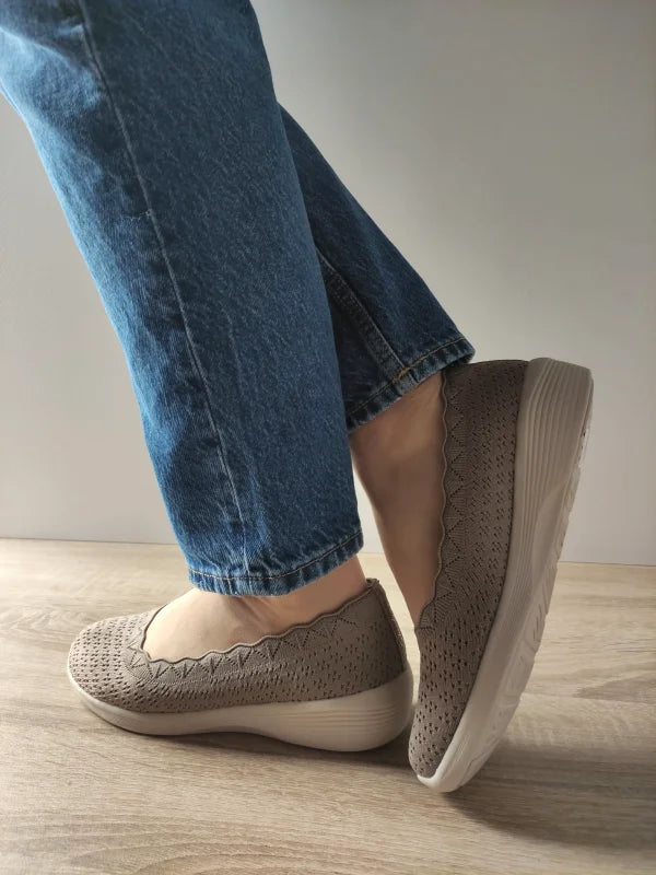 Pantofii casual Skechers în nuanța bej închis (dark taupe) sunt combinația perfectă între confort și design modern. Cu o formă aerisită și detalii ondulate pe margine, acest model slip-on îți oferă o senzație plăcută de libertate la fiecare pas. Talpa ușor înclinată asigură o postură naturală și un mers lejer, ideal pentru plimbări lungi sau o zi activă la birou. Materialul textil perforat permite piciorului să respire, fără compromis la stil.