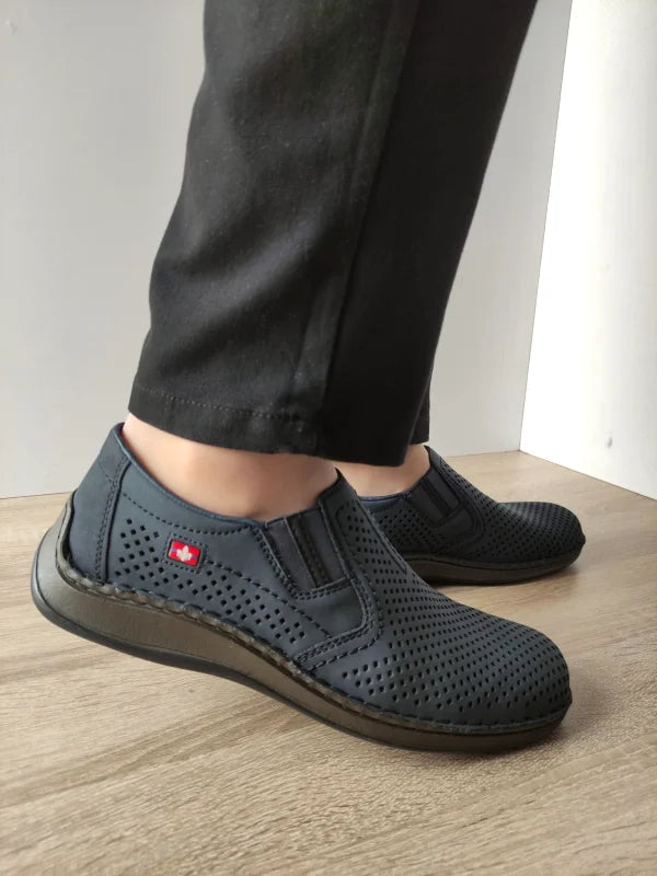 Designul slip-on cu elastic lateral asigură o încălțare rapidă, fără efort, în timp ce perforațiile atent distribuite îți mențin picioarele aerisite pe tot parcursul zilei. Talpa ușoară și flexibilă oferă o susținere naturală, ideală pentru plimbări, serviciu sau ieșiri în oraș.