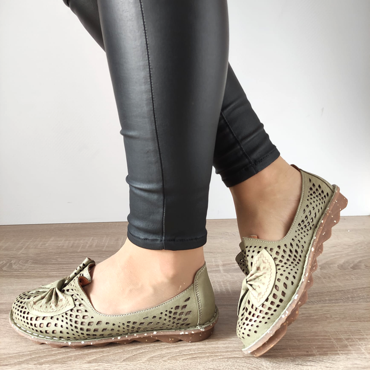Acești pantofi casual perforați pentru femei sunt confecționați din piele naturală, oferind un aspect elegant și o durabilitate ridicată. Închiderea tip slip-on permite încălțarea și descălțarea rapidă, fără a fi nevoie de șireturi sau alte elemente de prindere. Designul perforat al pantofilor adaugă un element de stil și permite piciorului să respire în zilele călduroase de vară. Pantofii au o grosime a tălpii de 2 centimetri și o înălțime totală de 9 centimetri, asigurând confortul necesar pentru purtarea lor pe durata întregii zile.