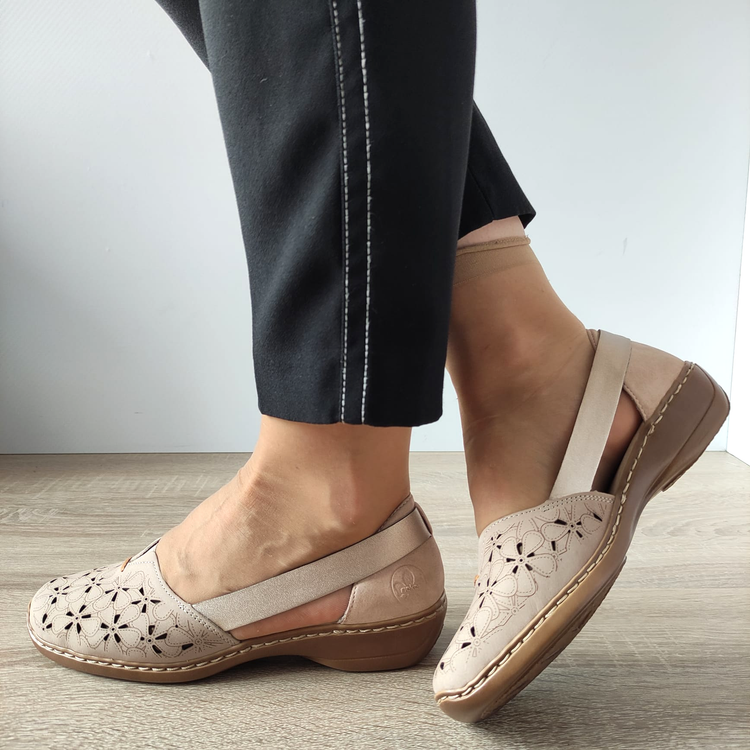 Pantofii casual perforați pentru femei RIEKER 41356-60 sunt o opțiune confortabilă și elegantă pentru zilele de vară sau activitățile relaxante. Cu un exterior realizat din piele naturală și piele ecologică, acești pantofi sunt durabili și oferă un aspect modern.