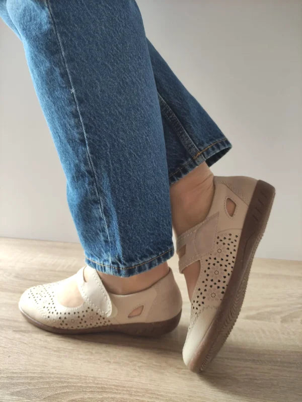 Pantofii Perforați Damă Rieker 47675-60 în nuanța Bej sunt creați special pentru femeile care apreciază confortul absolut și un look discret, dar îngrijit. Realizați dintr-o combinație practică de piele naturală și piele ecologică, acești pantofi casual impresionează prin perforațiile elegante ce oferă o ventilație excelentă în sezonul cald. Talpa ușoară și flexibilă de 2 cm îți susține piciorul în mod natural, iar sistemul de prindere Velcro asigură o fixare sigură și rapidă. Designul rotunjit și atent finisat îi face potriviți pentru ținute lejere, plimbări sau activități de zi cu zi.