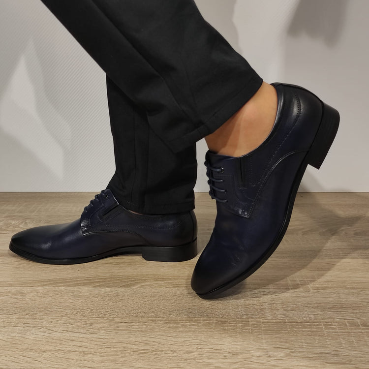 Îți prezentăm pantofii eleganți pentru bărbați, modelul ELDEMAS VS161-07, de culoare albastră, confecționați din piele naturală pentru un aspect sofisticat și calitate superioară.