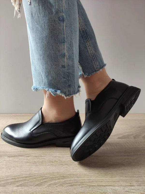 Pantofii eleganți Formazione pentru bărbați impresionează prin linia lor clasică și finisajul impecabil din piele naturală. Nuanța de negru îi face versatili, potriviți atât pentru ținute office, cât și pentru evenimente speciale. Talpa de 2,8 cm asigură confort și stabilitate, iar sistemul slip-on cu elastic lateral facilitează încălțarea rapidă și oferă un aspect modern și rafinat.