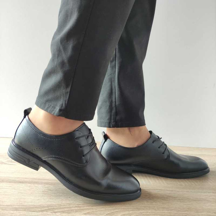 Pantofii eleganți MELS pentru bărbați, modelul D16331, au un design clasic și sofisticat în nuanțe de negru, fiind perfecți pentru ocazii speciale sau ținute formale. Realizați din piele naturală, acești pantofi oferă un confort deosebit și un aspect rafinat. Talpa de 3 cm asigură o susținere adecvată și confort la purtare, iar sistemul de închidere cu șireturi oferă o fixare sigură și ajustabilă.