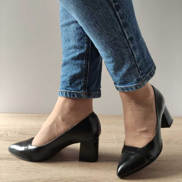 Descriere: Pantofi eleganți pentru damă de la Antonio, model negru, realizați din piele naturală. Acești pantofi sunt ideali pentru evenimente elegante, oferind un plus de rafinament prin toc și designul clasic.