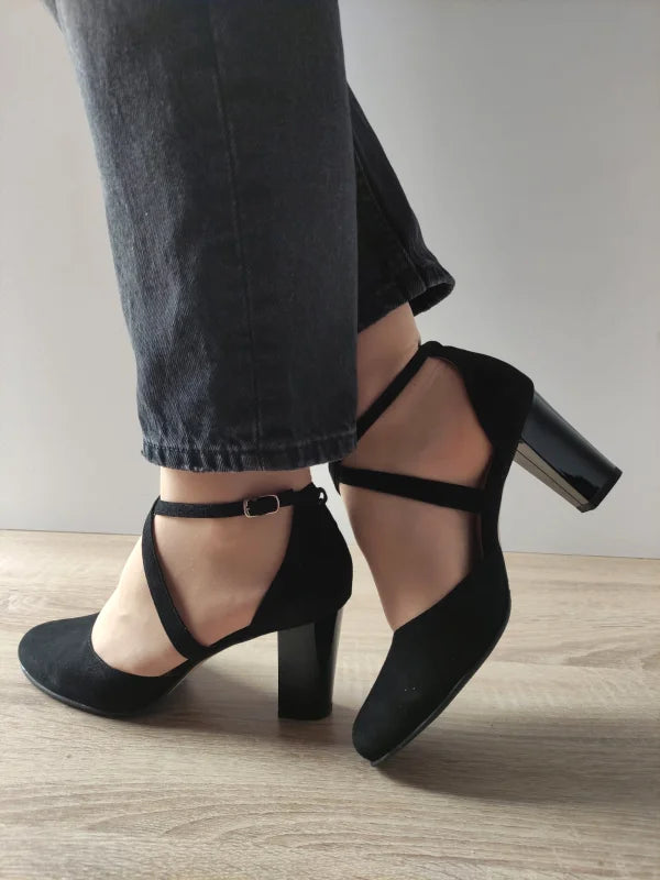 Material exterior: Piele Naturală Întoarsă (Velur) Înălțime totală a pantofului: 16 cm Înălțimea tocului: 7.3 cm Stil: Pantofi Eleganți Închidere: Cataramă Culoare: Negru Velur Cod model: Antonio 27336