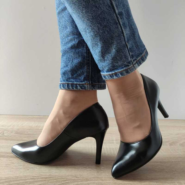 Caracteristici: Material: Piele naturală Tip închidere: Slip-on Înălțimea totală a pantofului: 14,5 cm Toc: 8,5 cm Culoare: Negru