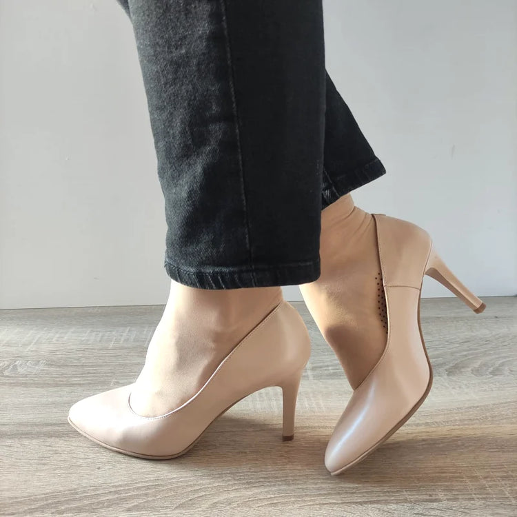 Pantofi eleganți de damă ANTONIO, realizați din piele naturală în nuanța ivoar. Modelul clasic, cu toc subțire și vârf ascuțit, adaugă o notă sofisticată oricărei ținute elegante. Perfecți pentru evenimente formale sau zilele când dorești să completezi o ținută cu stil și rafinament.