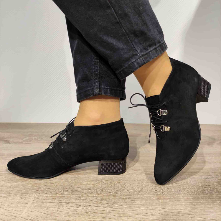Pantofii eleganți BRATEX 53 negri combină stilul și confortul într-un mod inegalabil. Talpa cu o grosime de 3,5 centimetri oferă stabilitate și susținere, permițându-ți să te miști cu încredere. Înălțimea totală a pantofului de 12 centimetri adaugă un plus de eleganță și stil. Tocul gros completează aspectul sofisticat al acestor pantofi și subliniază eleganța ta cu fiecare pas.