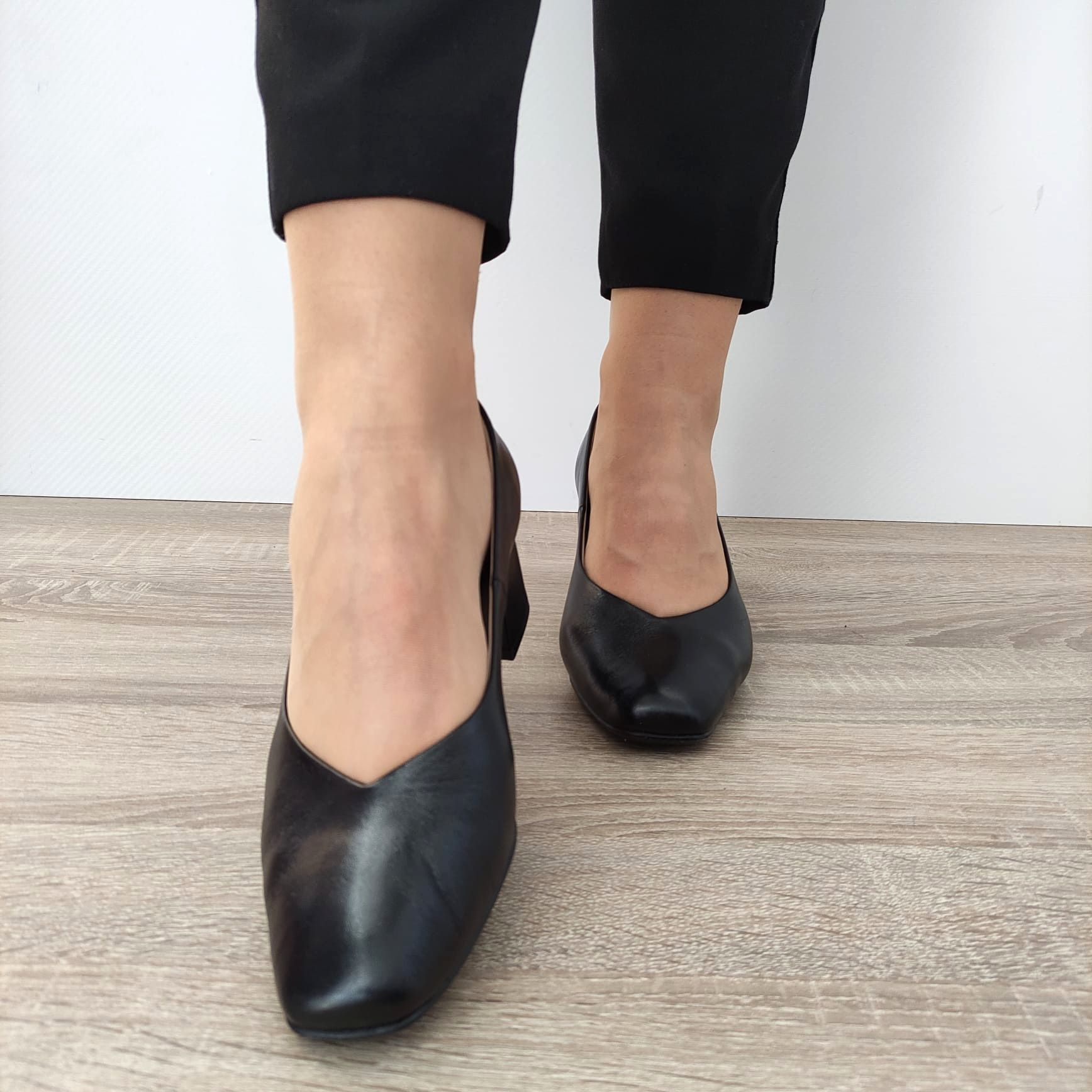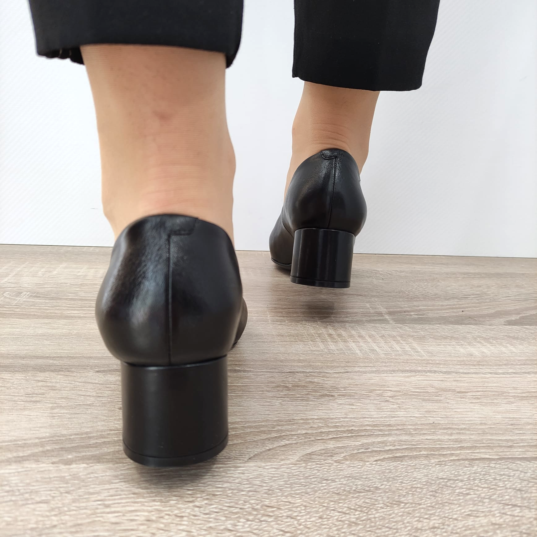 Acești pantofi eleganți pentru femei sunt confecționați din piele naturală de cea mai înaltă calitate, garantând durabilitate și un aspect sofisticat. Designul slip-on facilitează încălțarea și descălțarea rapidă, fără a fi necesare șireturile sau alte elemente de prindere. Cu o înălțime totală de 11 centimetri și o grosime a tălpii de 4,5 centimetri, acești pantofi sunt confortabili și pot fi purtați cu ușurință pe tot parcursul zilei. Tocul gros adaugă un plus de eleganță și stil, făcându-i potriviți pentru diverse ocazii formale sau casual. Perfecti pentru femeile care apreciază confortul și eleganța într-un mod practic și rafinat.
