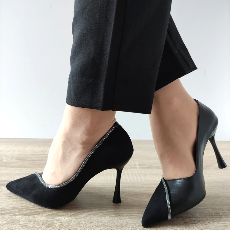 Descoperiți eleganța și rafinamentul suprem cu pantofii eleganți pentru femei, modelul DOGATI 049-753. Realizați dintr-o combinație excepțională de piele naturală și piele întoarsă, acești pantofi redefinesc luxul și stilul. Cu închidere tip slip-on, acești pantofi oferă o punere facilă și un aspect sofisticat, perfect pentru orice ocazie. Tocul subțire de 9,5 centimetri adaugă atât eleganță, cât și confort, garantând un aspect impecabil și o senzație plăcută la purtare. Înălțimea totală a pantofului este de 15,5 centimetri, oferindu-vă un stil remarcabil și o prezență irezistibilă. Cod produs: DOGATI 049-753. Alegeți rafinamentul și calitatea superioară cu acești pantofi eleganți, care vă vor încânta cu fiecare pas!