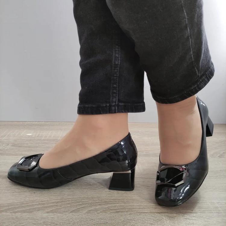 Caracteristici: ✔ Material: Piele naturală lăcuită ✔ Înălțime totală: 11 cm ✔ Toc stabil de 4.5 cm ✔ Slip-on – ușor de încălțat ✔ Design croco lăcuit cu accesoriu metalic elegant