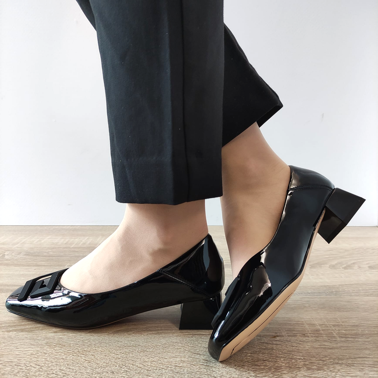 Acești pantofi eleganți pentru femei sunt fabricați din piele naturală lăcuită, conferindu-le un aspect sofisticat și rafinat. Închiderea tip slip-on face ca încălțarea și descălțarea să fie rapide și fără efort. Cu o înălțime totală de 10 centimetri și o grosime a tălpii de 3,8 centimetri, acești pantofi sunt confortabili și oferă stabilitate în timpul purtării. Tocul gros adaugă un plus de eleganță și stil, făcându-i potriviți pentru diverse ocazii formale sau casual. Perfecti pentru femeile care doresc să se simtă confortabil și elegante în același timp.