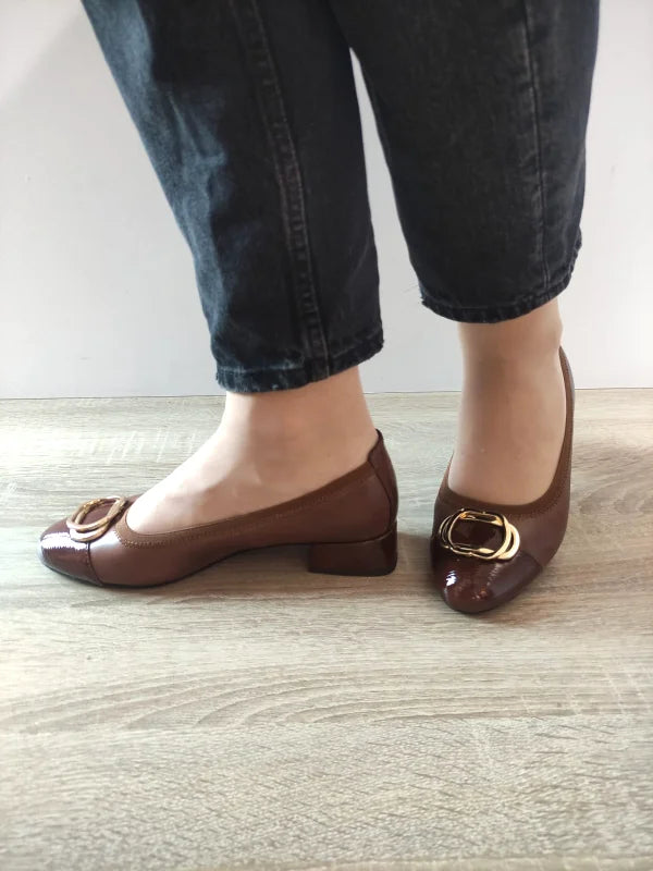 Pantofi Eleganți Damă Marco Tozzi 22214-45 392 Maro Coniac cu Detalii Lăcuite și Accesoriu Metalic