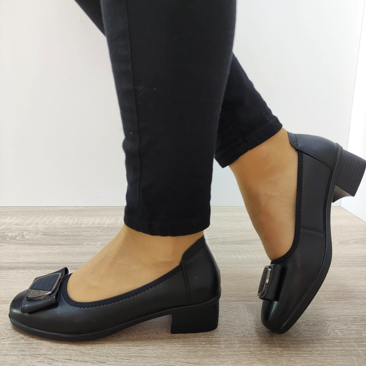 Îți prezentăm pantofii eleganți pentru damă, modelul PASS 20018A 01-N, în culoarea neagră. Acești pantofi eleganți sunt confecționați din piele naturală de înaltă calitate, oferindu-ți confort și rafinament în fiecare pas.