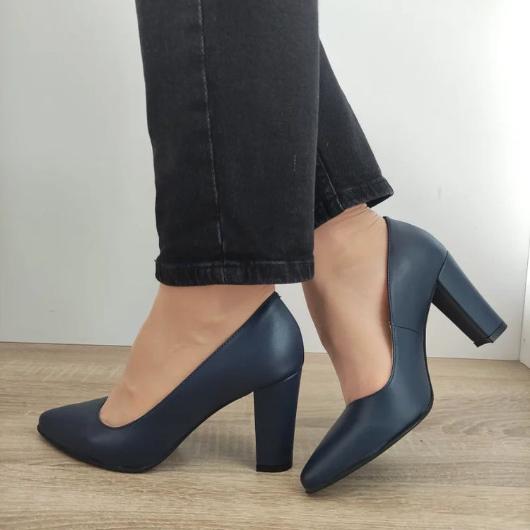 Descriere: Pantofii eleganți de damă PERLLA în nuanță bleumarin sunt o alegere clasică și rafinată pentru ținutele de seară sau ocaziile speciale. Construiți din piele naturală de calitate, aceștia asigură un confort sporit și un aspect sofisticat. Tocul înalt de 8.5 cm oferă o siluetă elegantă, completând perfect orice outfit formal.