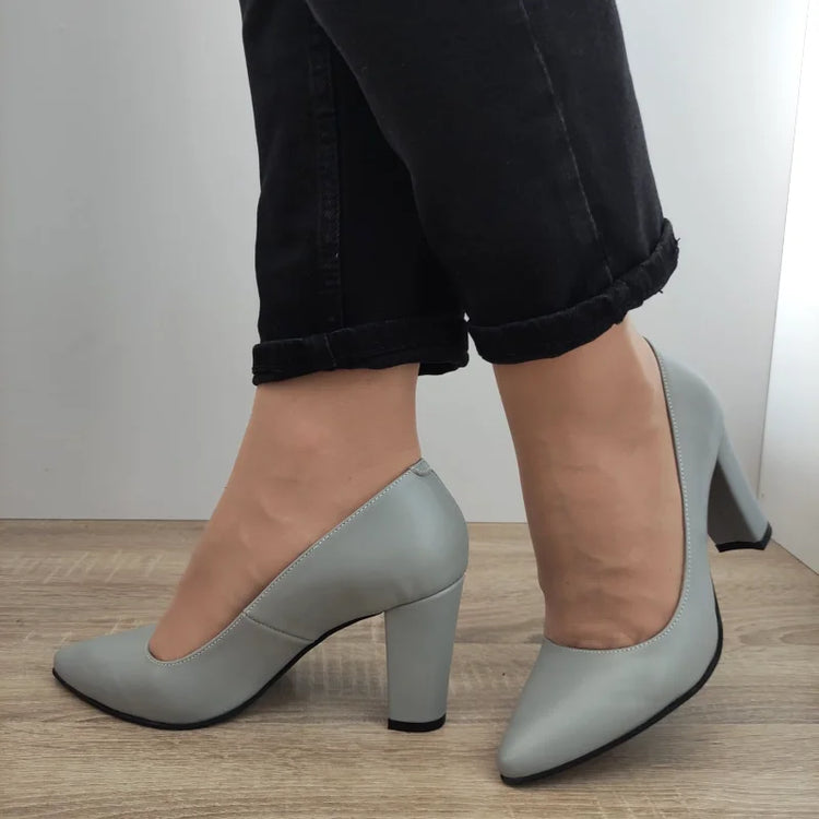 Descriere: Acești pantofi eleganți PERLLA într-o nuanță subtilă de gri adaugă o notă de rafinament ținutelor de seară sau de birou. Realizați din piele naturală de calitate superioară, sunt concepuți pentru a asigura atât confort, cât și un look sofisticat. Tocul înalt de 8.5 cm oferă o siluetă elegantă, perfect completată de designul clasic.