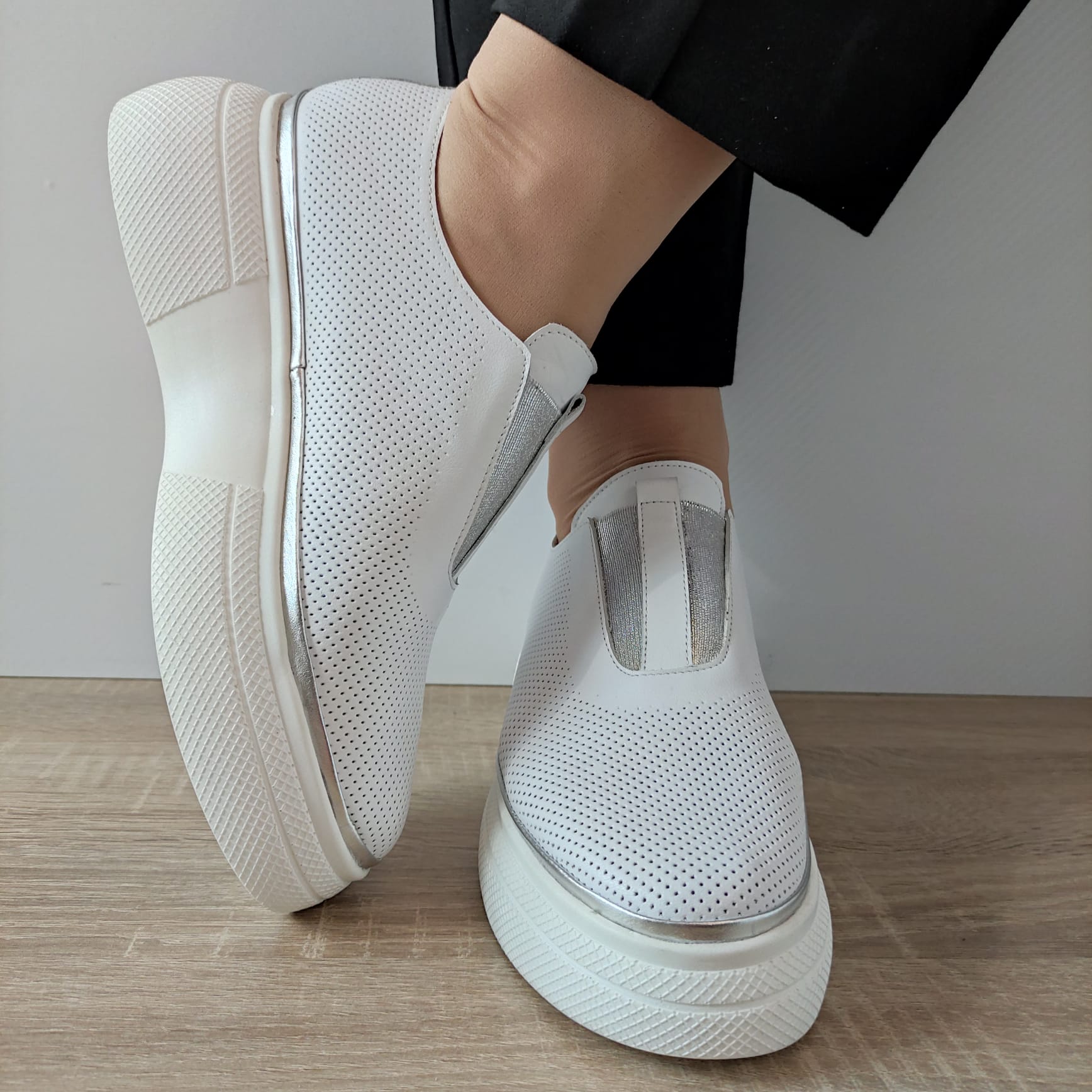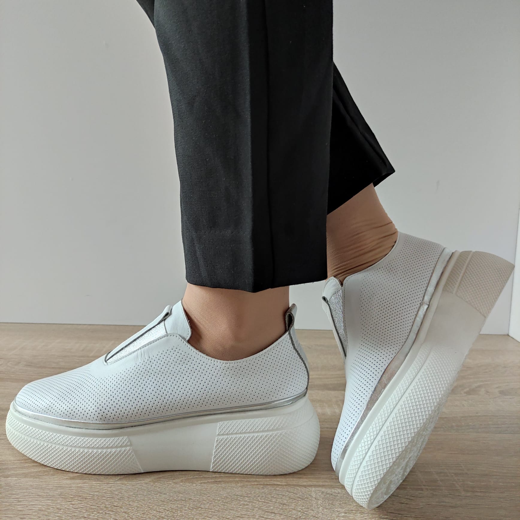 Completează-ți ținuta casual cu eleganța subtilă a pantofilor perforați PERLLA 3324-1. Confecționați din piele naturală de cea mai înaltă calitate, acești pantofi sunt atât rafinați, cât și confortabili. Designul slip-on face încălțarea rapidă și ușoară, fiind o alegere perfectă pentru femeile active care nu doresc să compromită stilul în timpul zilelor aglomerate. Grosimea tălpii de 3,5 centimetri și înălțimea totală de 9,5 centimetri oferă confort și susținere pe tot parcursul zilei, în timp ce tocul fără toc adaugă o notă de lejeritate și versatilitate. Cod produs: PERLLA 3324-1. Indiferent dacă ești la birou sau în oraș cu prietenii, acești pantofi sunt alegerea perfectă pentru un aspect chic și relaxat. Alege PERLLA 3324-1 pentru a-ți completa garderoba cu o pereche de pantofi care îmbină perfect stilul și confortul!