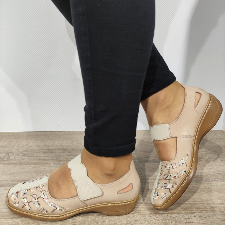 Pantofii Rieker 41369-60 au un design perforat, ceea ce permite piciorului să respire în timpul purtării și adaugă un detaliu interesant aspectului general al pantofilor.