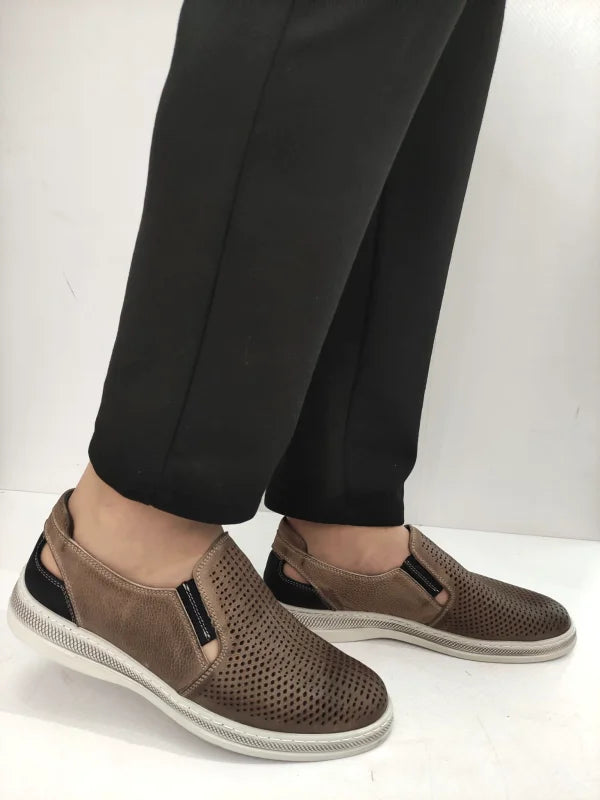 Pantofi perforați slip-on din piele naturală – stil rafinat și aerisire perfectă pentru zilele călduroase! Acești pantofi casual slip-on taupe sunt alegerea ideală pentru bărbatul care caută eleganță discretă și confort de durată. Realizați din piele naturală perforată, oferă o ventilație excelentă și un design modern, iar elasticul lateral permite o încălțare rapidă și practică. Talpa flexibilă și ușoară adaugă confort la fiecare pas.