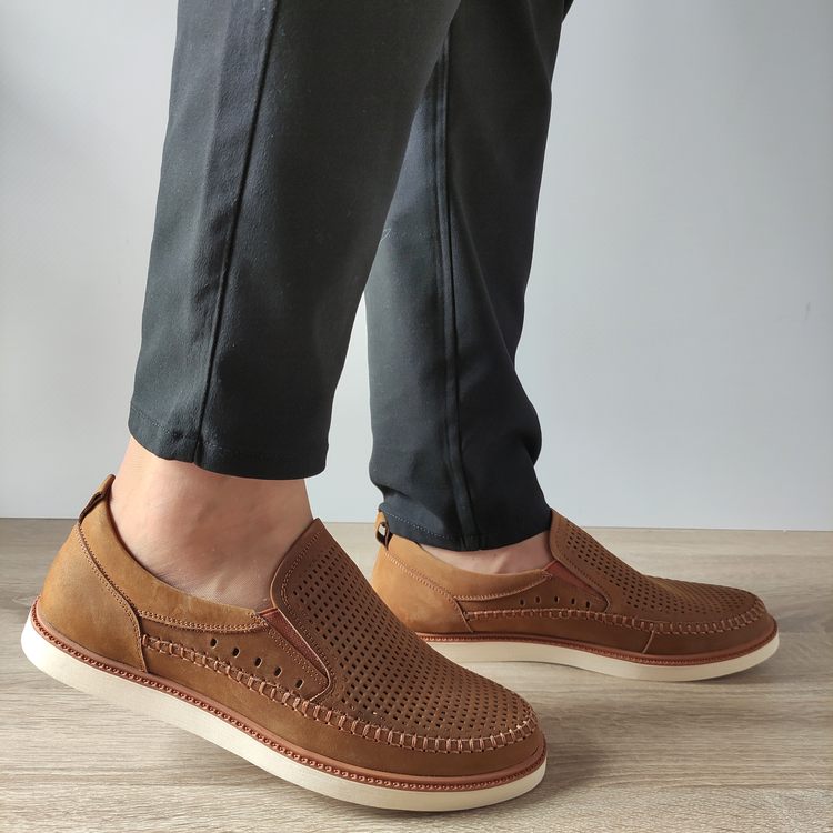 Îți prezentăm pantofii casual perforați pentru bărbați, modelul MELS Z1248703-5, confecționați din piele naturală de înaltă calitate, pentru a oferi un aspect modern și o durabilitate superioară. Acești pantofi casual vin într-o nuanță elegantă de taupe, perfectă pentru a adăuga un strop de stil și rafinament ținutelor tale de zi cu zi.