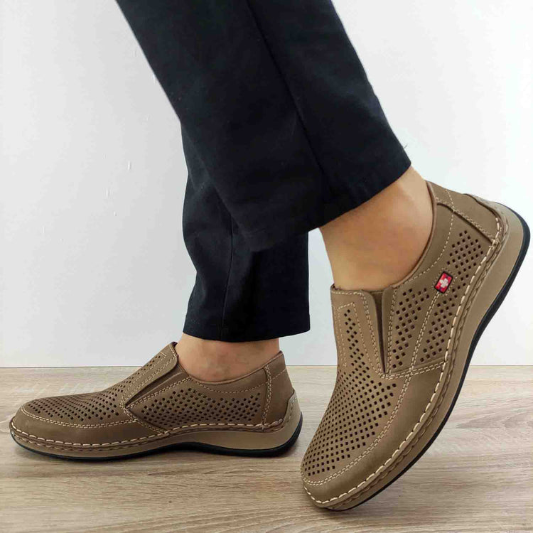 PANTOFI PERFORATI CASUAL BARBATI RIEKER 05277-64 BEJ NABUCK