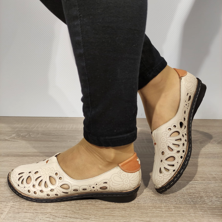 Cu o închidere tip slip-on elastic, acești pantofi se îmbracă ușor și oferă o potrivire perfectă. Detaliile perforate subtile adaugă un plus de eleganță și contribuie la circulația aerului, menținându-ți picioarele confortabile în zilele călduroase.