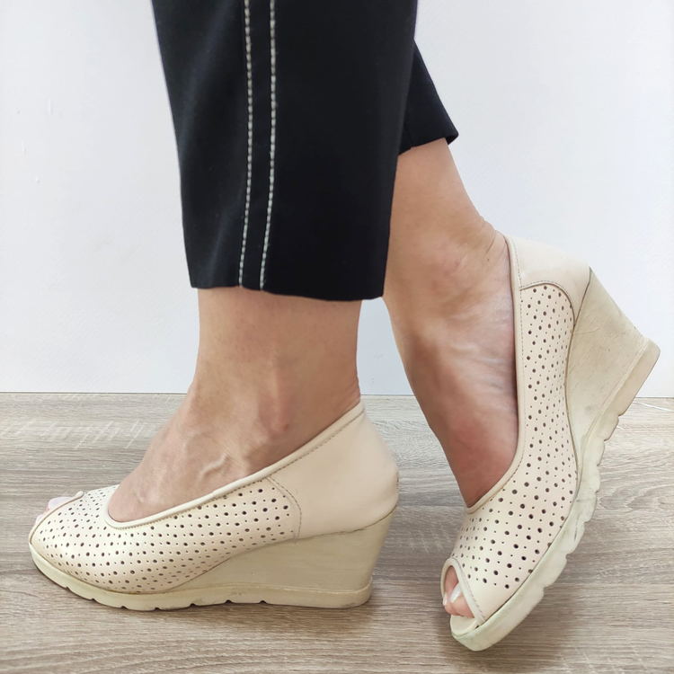 Modelul NICOLIS 55672 se remarcă prin eleganță și simplitate. Realizați din piele naturală de înaltă calitate, acești pantofi decupați pentru damă sunt ușor de încălțat datorită designului slip-on. Deși sunt fără toc, grosimea tălpii de 7 centimetri oferă o înălțime discretă, iar înălțimea totală a pantofului ajunge la 14 centimetri. Perfect pentru ocaziile în care dorești să te simți confortabil, dar și stilat.