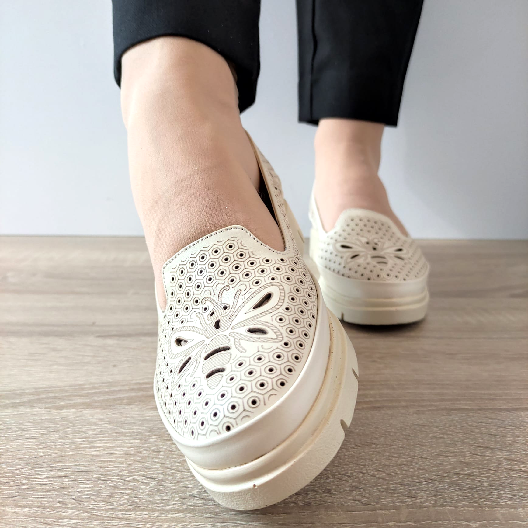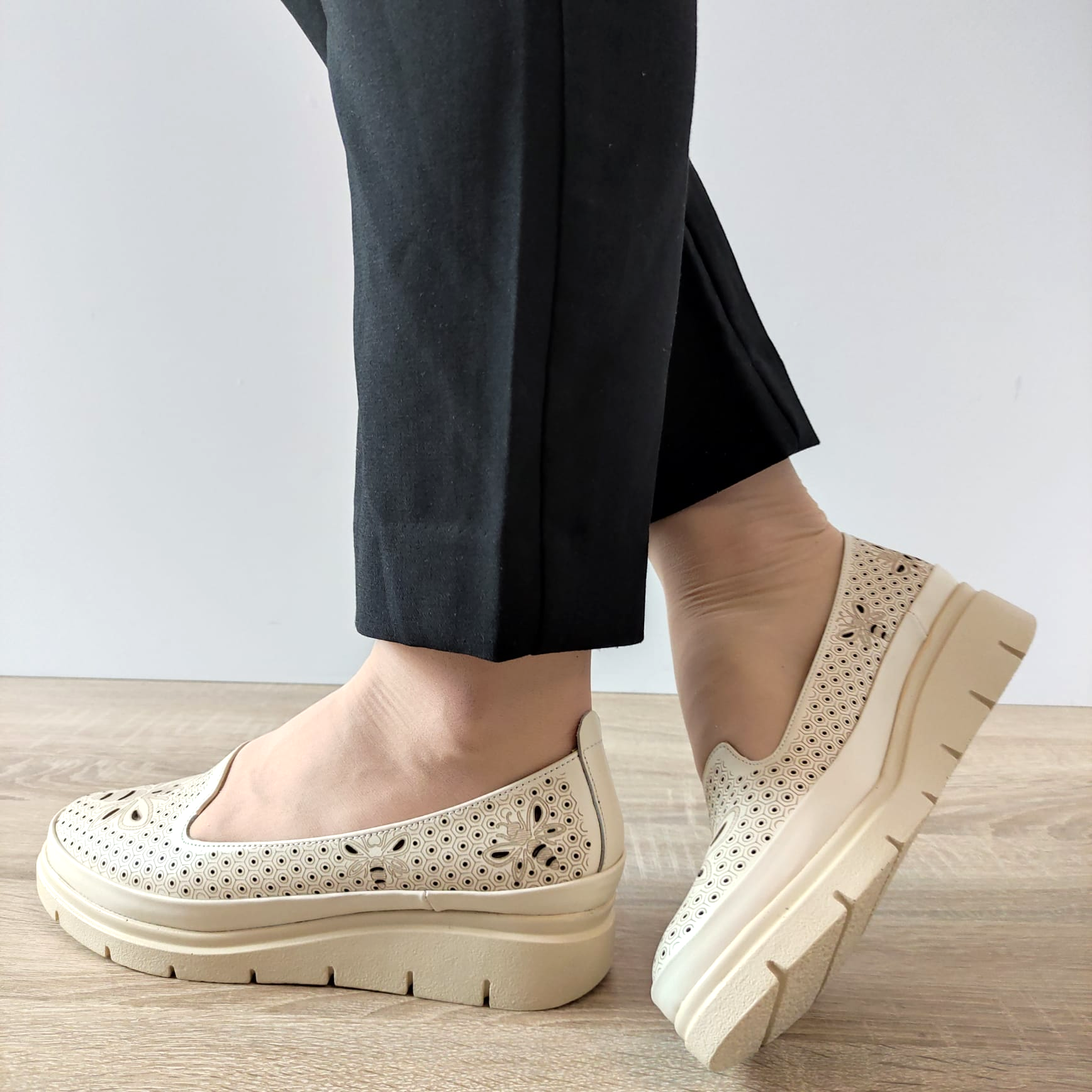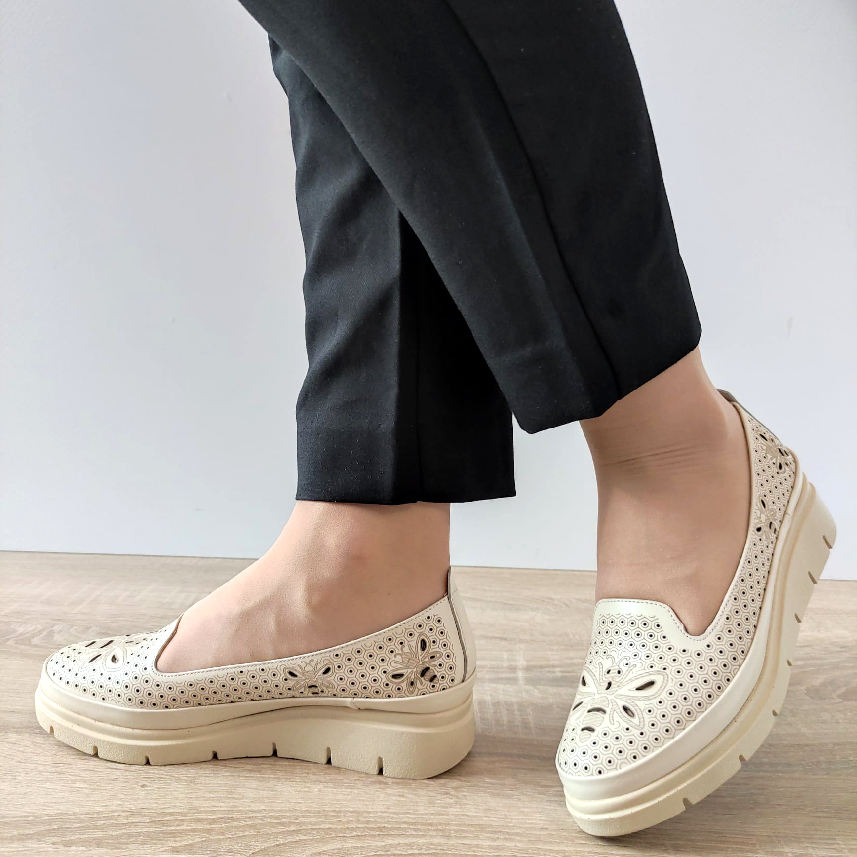 Adăugați un element de rafinament și confort garderobei dvs. cu pantofii perforați casual PERLLA 186-19. Confectionați din piele naturală de cea mai înaltă calitate, acești pantofi sunt o alegere ideală pentru femeile care apreciază atât stilul, cât și confortul în fiecare pas. Cu un design slip-on, acești pantofi sunt ușor de încălțat și se potrivesc perfect pentru o varietate de ocazii. Grosimea tălpii de 3,5 centimetri și înălțimea totală de 9,5 centimetri oferă un echilibru perfect între stil și confort, iar tocul fără toc adaugă o notă de lejeritate și funcționalitate. Cod produs: PERLLA 186-19. Indiferent dacă mergeți la birou sau petreceți timp cu prietenii, acești pantofi vă vor oferi un aspect elegant și rafinat, fără a compromite confortul. Alegeți PERLLA 186-19 pentru a completa cu stil orice ținută casual!