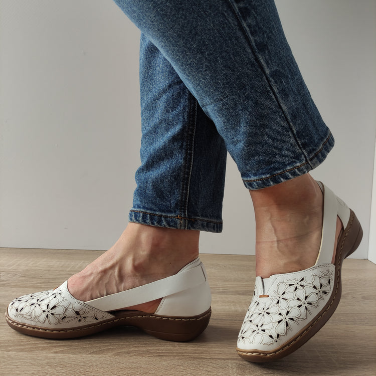 Completează-ți garderoba cu acești pantofi perforați pentru damă de la Rieker. Modelul 41356-80 în culoarea alb este realizat din piele naturală combinată cu piele ecologică, oferind un aspect elegant și o durabilitate excelentă. Designul perforat floral adaugă un plus de stil și permite piciorului să respire, fiind ideal pentru zilele călduroase. Tocul jos și gros asigură confortul pe parcursul întregii zile.