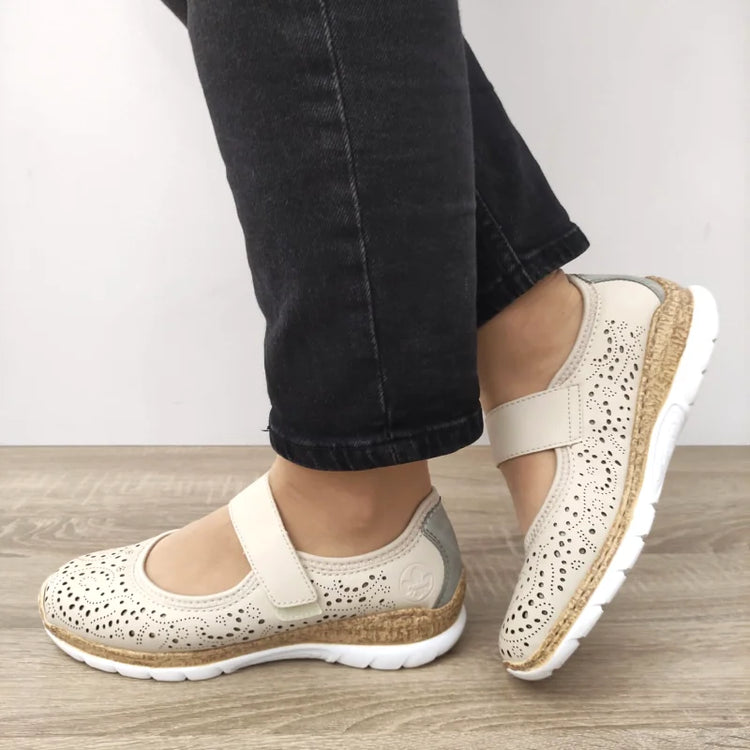 Pantofi Perforați Dama Rieker N4299-60 Bej – Lejeritate și Confort pentru Zilele Active