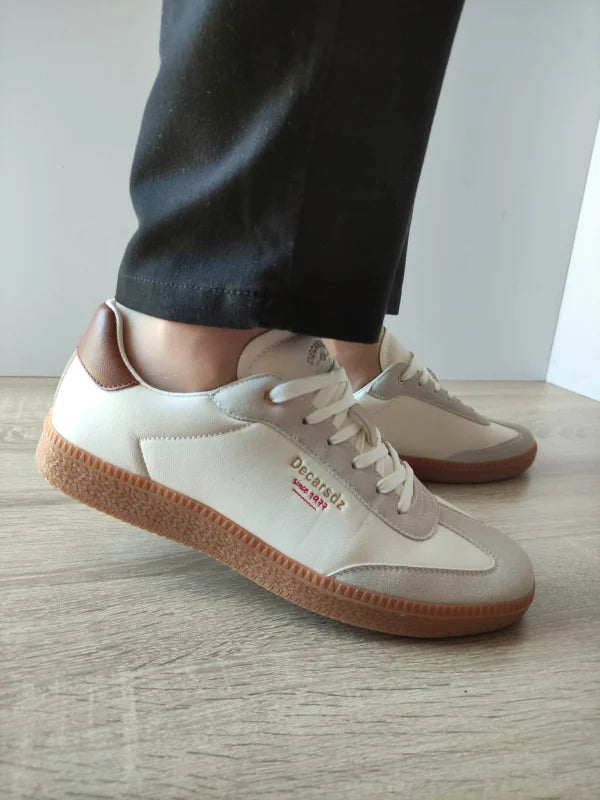 Un model cu aer retro și eleganță discretă. Pantofii sport Decar Y223 reinterpretează stilul clasic cu un mix de crem și maro cald, accentuat de o talpă texturată într-o nuanță naturală. Realizați din piele ecologică, sunt comozi și ușor de asortat cu jeans, pantaloni chino sau ținute smart-casual. Stilul inspirat din sneakerșii vintage oferă un look rafinat, dar relaxat.