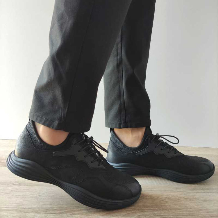 Pantofii sport Franco Gerardo pentru bărbați, modelul A66, au un design simplu și elegant în nuanțe de negru, fiind perfecți pentru activitățile zilnice. Construcția din piele naturală oferă un aspect rafinat și un confort sporit. Talpa de 3 cm oferă o bună amortizare, iar închiderea cu șireturi permite o fixare sigură și personalizată.