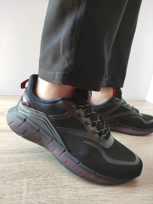 Cu un design modern și dinamic, acești pantofi sport Goretti Riva ies în evidență prin talpa robustă, cu forme curbate și inserții roșii discrete, care le oferă un aer urban aparte. Construiți din material textil respirabil și cu întărituri laterale pentru susținere, acești adidași sunt ideali pentru activități zilnice sau plimbări îndelungate. Închiderea cu șireturi clasice permite o ajustare optimă pe picior, iar contrastul subtil dintre negru și detalii gri adaugă un plus de stil.