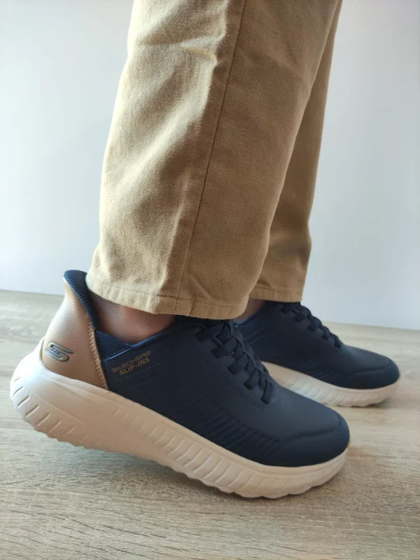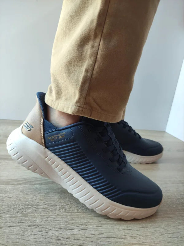 Pantofi sport din piele ecologică, realizați cu tehnologia inovatoare Slip-Ins, care permite încălțarea fără mâini și oferă o potrivire sigură și confortabilă. Branțul Memory Foam se mulează perfect pe forma piciorului, asigurând confort pe tot parcursul zilei, iar talpa groasă și ușoară oferă o amortizare excelentă. Un model modern și practic, ideal pentru purtare zilnică.