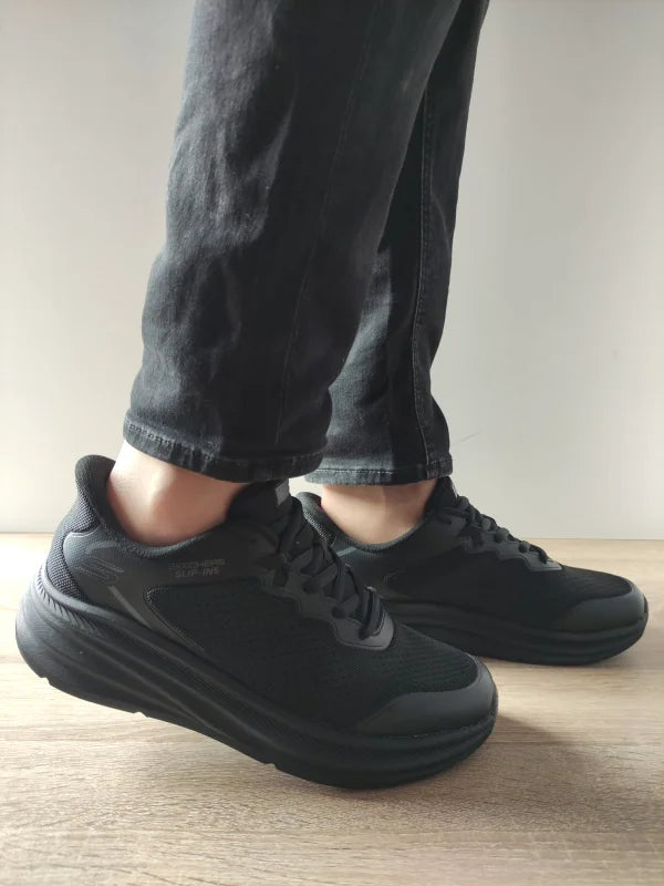 Descriere: Alege pantofii sport pentru bărbați Skechers 118431 BBK, special concepuți pentru a oferi confort maxim și un look modern în orice moment al zilei. Realizați din material textil respirabil, aceștia asigură ventilație și o senzație de lejeritate la purtare. Talpa înaltă și ergonomică, cu 3.5 cm la spate, atenuează șocurile și face fiecare pas mai ușor. Datorită tehnologiei Slip-ins, îi poți încălța rapid, fără efort, iar designul în negru integral îi transformă într-o alegere versatilă pentru ținute casual sau sport.