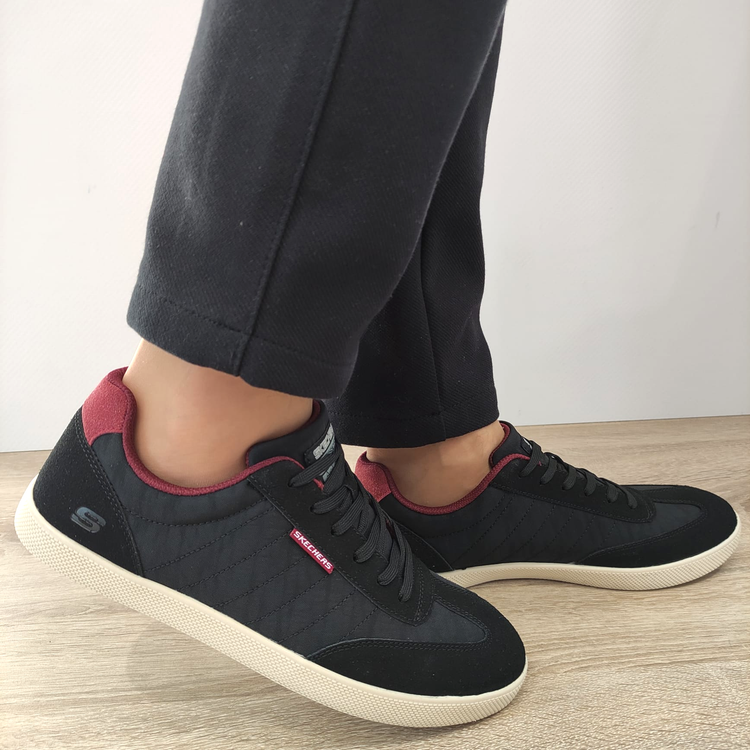 Acești pantofi sport pentru bărbați sunt concepuți pentru a oferi confort și stil în timpul activităților zilnice. Materialul exterior din textil combinat cu pielea ecologică conferă pantofilor un aspect modern și o durabilitate sporită. Sistemul de închidere cu șireturi permite o potrivire ajustabilă, oferind suportul necesar în timpul mersului sau al altor activități fizice. Cu o grosime a tălpii de 2 centimetri și o înălțime totală de 9,5 centimetri, acești pantofi sunt ușori și confortabili, fiind potriviți pentru diverse activități sportive sau de agrement. Codul produsului pentru acești pantofi sport este SKECHERS 210824 BLK. Alegeți acești pantofi pentru a vă bucura de confort și stil în orice moment al zilei.