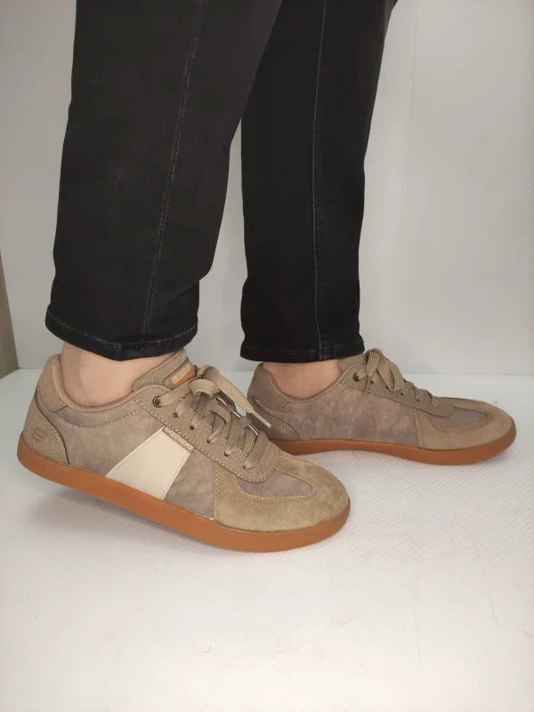 Pantofii sport Skechers 210960 TPE aduc un aer retro casual în garderoba ta, fiind o alegere ideală pentru stilul de zi cu zi. Construiți din material textil combinat cu piele ecologică, în nuanțe elegante de bej taupe, acești pantofi ies în evidență prin designul discret, confortul deosebit și talpa gum care completează aspectul vintage. Interiorul este prevăzut cu branț Memory Foam, ce oferă amortizare moale și susținere la fiecare pas.