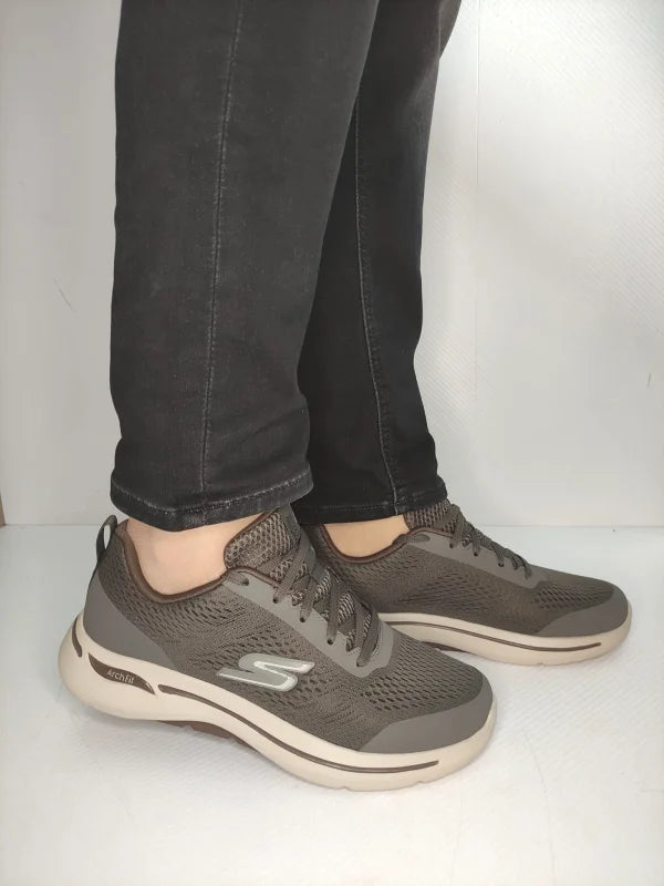 Pantofii sport Skechers 216116 TPE în nuanță taupe sunt alegerea ideală pentru bărbații care își doresc confort maxim și un look urban discret. Realizați din material textil respirabil, sunt dotați cu branț Arch Fit certificat de podiatri pentru o susținere anatomică perfectă. Talpa intermediară amortizează șocurile la fiecare pas, în timp ce designul simplu și modern îi face versatili pentru purtare zilnică. Sistemul de închidere cu șireturi permite ajustarea ideală pe picior.