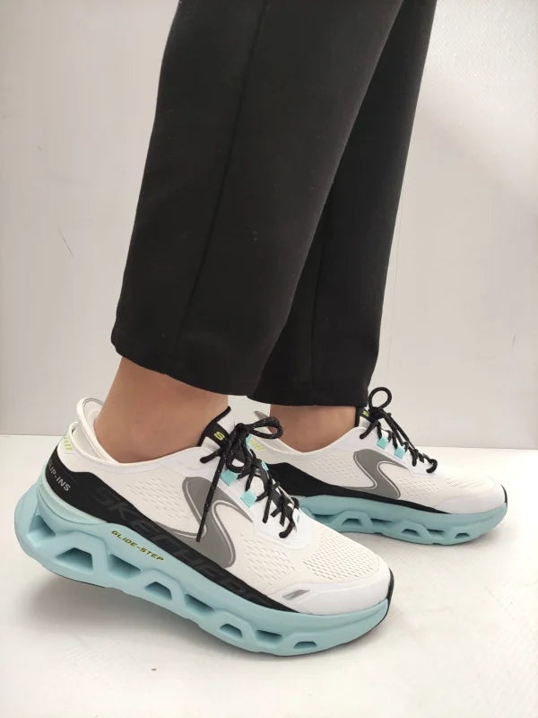 Descriere: Pantofii sport Skechers 232921 WBL se remarcă instant prin talpa inovatoare Glide-Step într-o nuanță deschisă de bleu, care contrastează plăcut cu partea superioară albă. Acest model aduce împreună designul futurist și funcționalitatea urbană, fiind perfect pentru cei care își doresc să combine stilul activ cu confortul absolut. Materialul textil permite o bună circulație a aerului, iar șireturile negre adaugă o notă de contrast și control în mișcare.