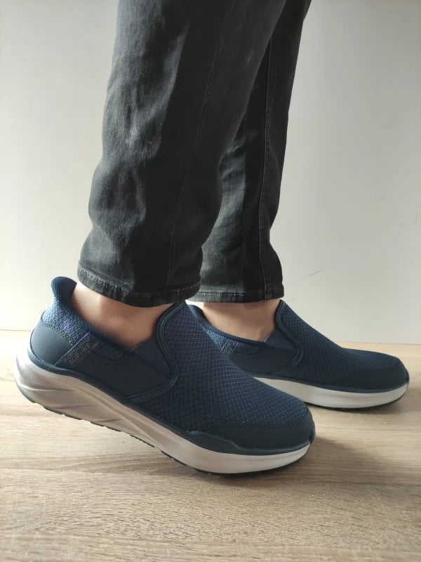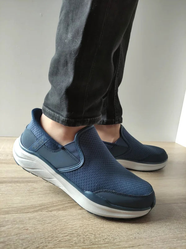 Descriere: Alege pantofii sport pentru bărbați Skechers 233103 NVY, creați pentru un plus de confort și funcționalitate în fiecare zi. Construcția din material textil respirabil permite o bună circulație a aerului, iar talpa flexibilă, cu 4 cm la spate, oferă amortizare și stabilitate. Sistemul Slip-ins face încălțarea extrem de comodă, iar tehnologiile Air-Cooled și Memory Foam adaugă un nivel superior de confort. Culoarea navy cu talpă contrastantă albă oferă un look modern și ușor de asortat.