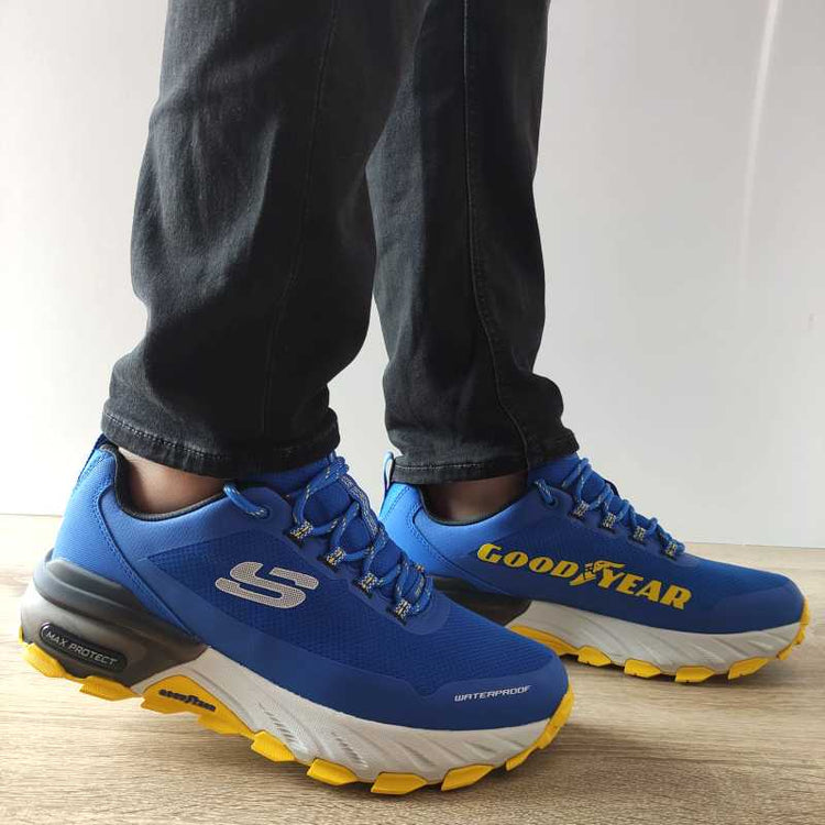 Descriere: Pantofi sport Skechers pentru bărbați, modelul 237304-BLYL, sunt ideali pentru activități sportive și utilizare zilnică. Exteriorul din material textil rezistent asigură o ventilație optimă, iar tehnologiile Waterproof și Air-Cooled Memory Foam oferă confort și protecție împotriva umezelii. Designul vibrant, cu talpă robustă și detalii Goodyear, completează aspectul sportiv și modern.
