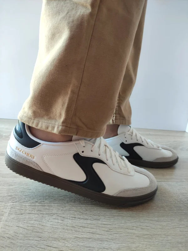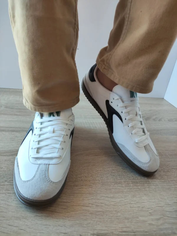Pantofi sport realizați din piele naturală combinată cu piele ecologică, prevăzuți cu branț Air-Cooled Memory Foam pentru un confort excelent și aerisire optimă. Talpa din cauciuc oferă aderență sigură și flexibilitate, iar combinația elegantă de alb și negru aduce un aer retro-modern ușor de integrat în orice ținută casual.