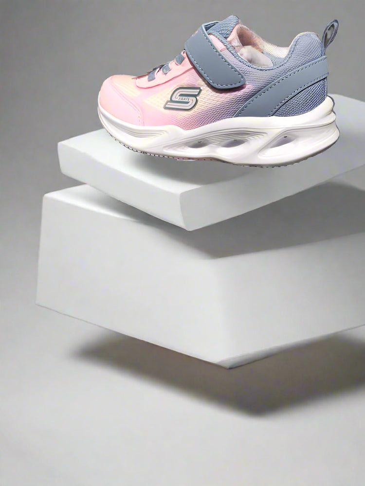 Descriere: Pantofii sport pentru copii Skechers 303714L GYLP aduc distracție la fiecare pas datorită talpii care se aprinde la mers! Designul în nuanțe de gri și roz este perfect echilibrat între stil modern și funcționalitate, iar detaliile strălucitoare adaugă un plus de farmec. Sistemul de închidere cu velcro (scai) și șiret elastic facilitează încălțarea, iar talpa groasă oferă stabilitate și confort. Un model spectaculos, perfect pentru copiii activi care adoră să iasă în evidență!