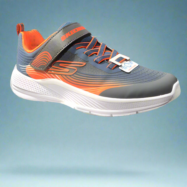 Descriere: Pantofi sport pentru copii Skechers cu un design energic în nuanțe de albastru, gri și portocaliu, ideali pentru mișcare zilnică și confort sporit. Modelul oferă un aspect modern, fiind ușor de asortat la ținutele sport sau casual. Talpa groasă și conturul bine definit asigură stabilitate, în timp ce sistemul de închidere tip velcro (scai) permite încălțarea rapidă. Interiorul este moale, cu susținere optimă pentru piciorul copilului, iar materialele sunt ușor de întreținut.