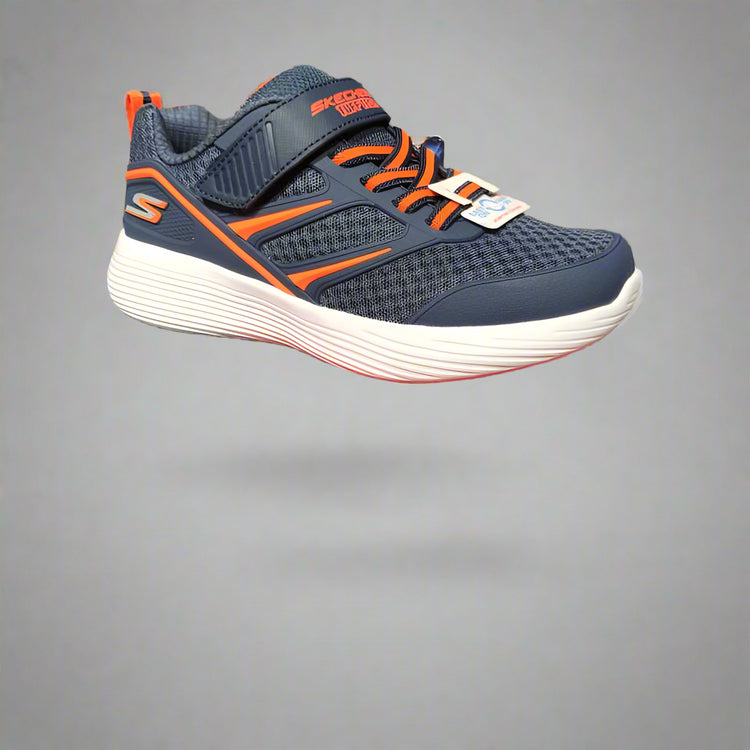 Descriere: Pantofii sport pentru copii Skechers 405092L în nuanțe de bleumarin și portocaliu aduc un plus de energie fiecărei mișcări. Materialul textil respirabil permite aerisirea piciorului, în timp ce închiderea cu scai (velcro) și elastic face încălțarea extrem de rapidă. Talpa albă oferă contrast și aderență excelentă pentru activitățile zilnice.