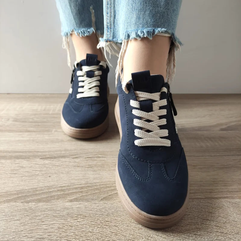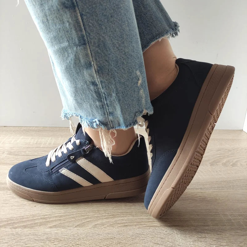 Alege confortul zilnic fără a face compromisuri la capitolul stil cu acești pantofi sport Jana bleumarin cu bej. Realizați din piele ecologică de calitate, oferă o senzație plăcută la purtare și o susținere excelentă. Contrastul dintre bleumarin și bej adaugă un aer discret și modern, iar detaliile cu șireturi și fermoar lateral îi fac practici și ușor de încălțat. Talpa comodă, cu profil stabil, îți oferă siguranță în mișcare zi de zi.